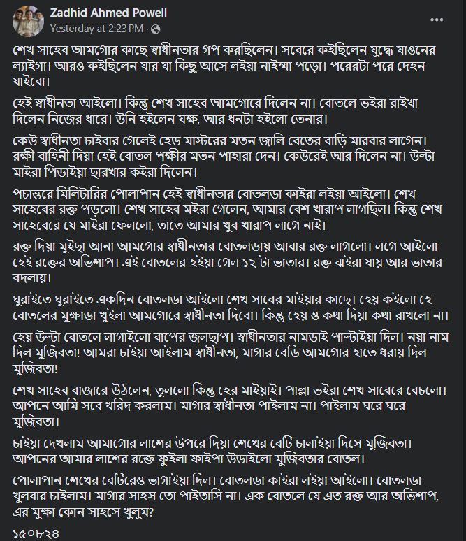 বাংলার নতুন গণ অভ্যুত্থানের শুরু হলো ১৬ জুলাই ২০২৪ থেকে।