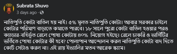 ২০১৮ তে যেভাবে এক কথা বলে ২০২৪ এ এসে আরেক কথা বলেছে তারা, সে একইভাবে রায় বদলে যাবে আবার। রক্তের দাগ হাতে নিয়ে কেউ দেশ শাসন করতে পারে না। তখন তারা স্বৈরাচারী হয়ে যায়, আরো বেশি প্যারানয়াতে আক্রান্ত হয়ে অত্যাচারের মাত্রা বাড়িয়ে দেয়।
